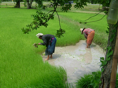 ใส่ปุ๋ยแต่งหน้าในระยะข้าวกำเนิดช่อดอก |