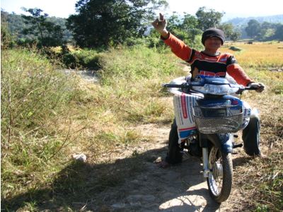 วิธีที่หนึ่งเรียกว่ากล้าบกหรือกล้าดอย แปลงนาที่ปริมาณน้ำไม่พอเพียงสำหรับการเตรียมแปลงกล้านิยมใช้วิธีนี้ซึ่งอาศัยน้ำฝนเป็นหลักเพื่อช่วยในการงอกของเมล็ดพันธุ์ข้าวและให้ความชุ่มชื้นแก่ต้นกล้า การเตรียมแปลงกล้าจะเลือกพื้นที่สภาพไร่ใกล้ๆ แปลงนา แผ้วถางเผากำจัดวัชพืชและเตรียมดินเหมือนการปลูกข้าวไร่ ใช้เมล็ดพันธุ์ข้าวแห้งหว่านลงในแปลงกล้าใช้ดินหรือฝุ่นกลบบางๆ บางแห่งใช้เสียมด้ามยาวขุดดินเป็นหลุมระยะถี่ๆ ประมาณ 5 เซนติเมตร ลึก 2-3 เซนติเมตร ระหว่างแถวประมาณ 7-10 เซนติเมตร ขวางไปกับความลาดชันของพื้นที่ จากล่างขึ้นบน โรยเมล็ดข้าวแห้งเป็นแถว เมล็ดจะถูกกลบโดยดินที่เกิดจากการขุดหลุมในแถวด้านบน และการตกของฝนจะช่วยในการกลบเมล็ดได้อีกระดับหนึ่ง