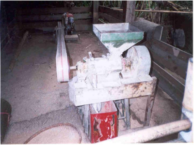 การแปรรูปเป็นข้าวสาร ใช้ครกกระเดื่องหรือเรียกว่า “การตำข้าว” ในการตำข้าวจะนำเมล็ดข้าวมาตากแดดให้แห้งก่อนประมาณ 1 วัน เพื่อให้เมล็ดข้าวสารกะเทาะออกจากเปลือกได้ง่ายขึ้นและหักน้อย แล้วใช้กระด้งฝัดแยกแกลบออกอีกครั้งหนึ่ง บางท้องถิ่นมีโรงสีขนาดเล็กสำหรับสีข้าว ปริมาณข้าวสารที่ได้จะมากกว่าข้าวที่ได้จากการตำ ข้าวเจ้าหรือข้าวเหนียวใช้วิธีการหุงโดยวิธีไม่เช็ดน้ำ ชาวปากะญอให้ความคิดเห็นว่า ข้าวที่สีจากโรงสีบริโภคแล้วอิ่มช้า นอกจากนี้ยังมีการใช้ข้าวแปรรูปเป็นผลิตภัณฑ์สำหรับใช้ในพิธีกรรมต่าง ๆ ได้แก่ สุราพื้นบ้าน ข้าวต้มมัด ข้าวปุ๊ ฯลฯ