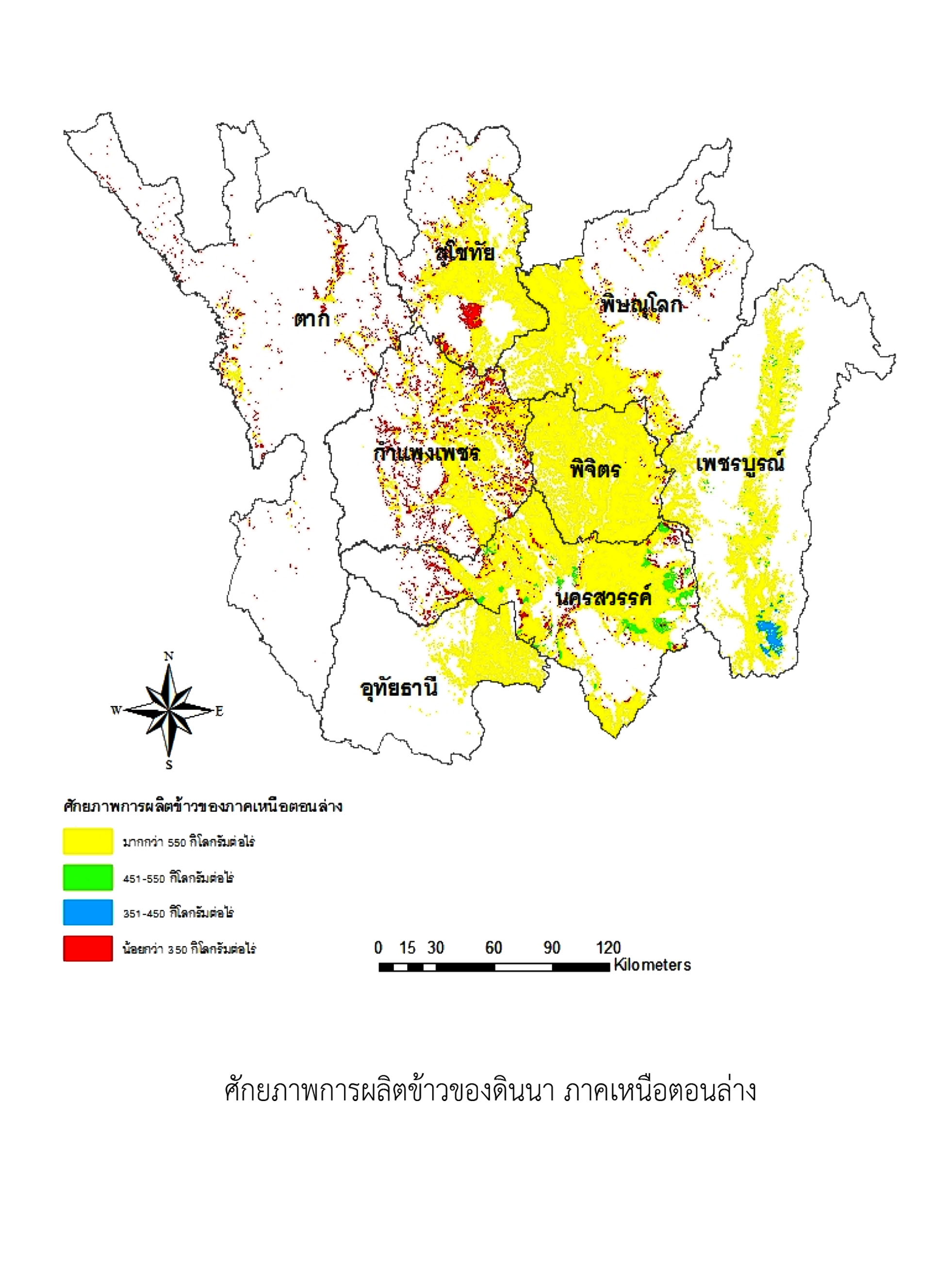 แผนที่ศักยภาพการผลิตข้าว ภาคเหนือตอนล่าง