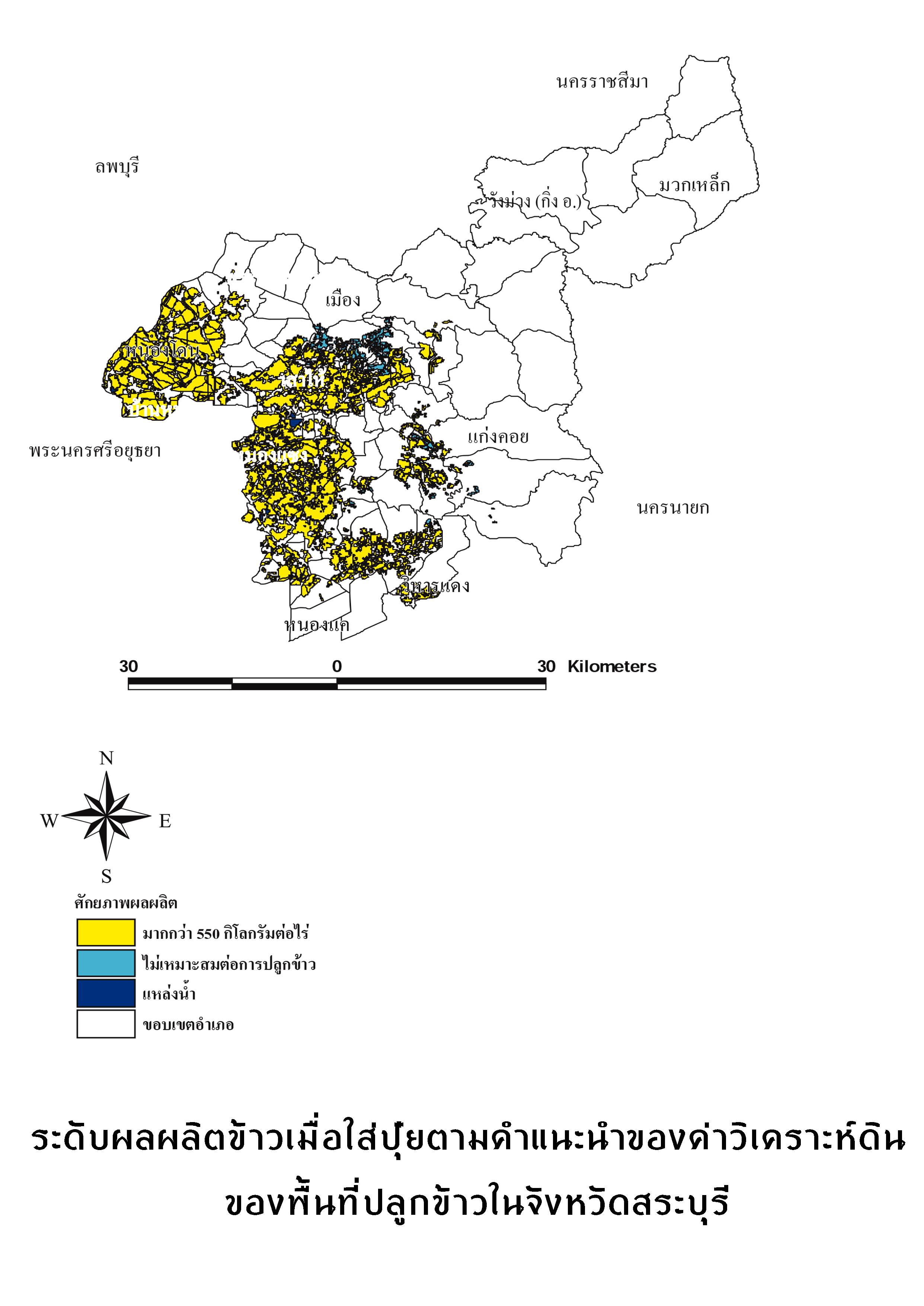 ตารางแสดง ศักยภาพการให้ผลผลิตข้าว ของจังหวัดสระบุรี