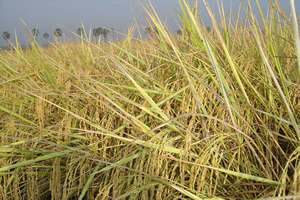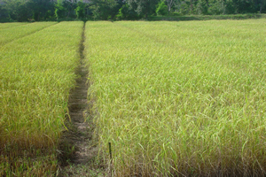 - ตรวจแปลงนาระยะข้าวเริ่มออกรวง หากพบรวงโผล่พ้นจากใบธงประมาณ 80% ของแปลง กำหนดเป็นวันออกดอก