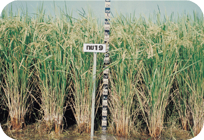 ทนต่อสภาพน้ำท่วม เมื่อต้นข้าวจมอยู่ใต้ผิวน้ำไม่เกิน 50 เซนติเมตรได้ประมาณ 7 วัน |
