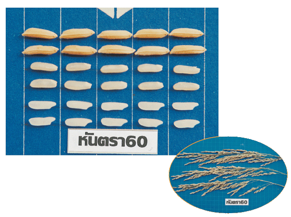 เมล็ดข้าวเปลือก ยาว x กว้าง x หนา = 10.2 x 2.6 x 2.1 มิลลิเมตร |