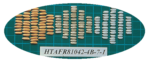 เมล็ดข้าวเปลือก ยาว x กว้าง x หนา = 10.2 x 2.6 x 2.0 มิลลิเมตร |