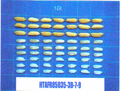 ได้จากการผสมพันธุ์แบบผสมเดี่ยว ระหว่างข้าวขึ้นน้ำพันธุ์อู่ตะเภา กับพันธุ์ขาวดอกมะลิ 105 ที่สถานีทดลองข้าวหันตรา ใน พ.ศ.2528 ปลูกคัดเลือกจนได้สายพันธุ์ HTAFR85035-B-R-R-7-9 |