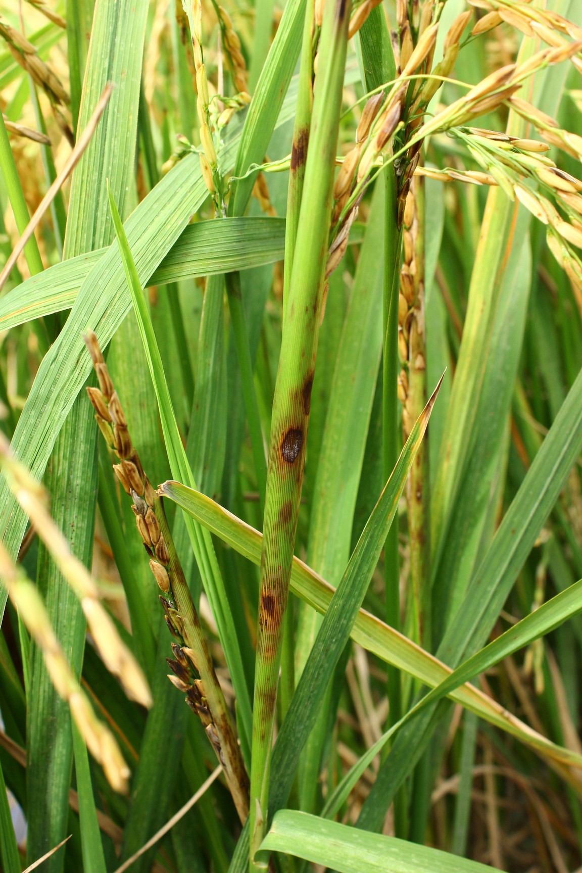 โรคกาบใบเน่า (Sheath Rot Disease)พบมาก ในนาชลประทาน ภาคกลาง สาเหตุ เชื้อรา Sarocladium oryzae Sawada อาการ ข้าวแสดงอาการในระยะตั้งท้องโดยเกิดแผลสีน้ำตาลดำบนกาบห่อรวง ขนาดแผลประมาณ 2-7 x 4-18 มิลลิเมตร ตรงกลางแผลมีกลุ่มเส้นใยสีขาวอมชมพู แผลนี้จะขยายติดต่อกันทำให้บริเวณกาบหุ้มรวงมีสีน้ำตาลดำและรวงข้าวส่วนใหญ่โผล่ไม่พ้นกาบหุ้มรวง หรือโผล่ได้บางส่วน ทำให้เมล็ดลีบและมีสีดำ
