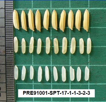 เมล็ดข้าวเปลือก ยาว x กว้าง x หนา = 10.7 x 2.6 x 2.2 มิลลิเมตร |