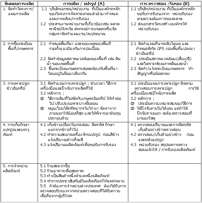 ปัจจุบันการค้าข้าวอินทรีย์ยังมีปริมาณน้อย แต่แนวโน้มการบริโภคข้าวอินทรีย์มีมากขึ้น เนื่องจากผู้บริโภคตระหนักถึงความปลอดภัยด้านอาหารและสิ่งแวดล้อม การผลิตข้าวเพื่อการค้าโดยทั่วไปจะไม่มีการรับผิดชอบร่วมกัน ดังภาพที่ 1 ส่วนการผลิตข้าวอินทรีย์เกษตรกรควรรวมตัวกันเพื่อวางระบบการผลิตและการตลาด ซึ่งจะส่งผลให้มีอำนาจในการต่อรอง โดยทุกกลุ่มร่วมกันรับผิดชอบกันทั้งระบบ ดังภาพที่ 2 และตารางที่ 1