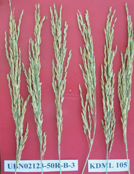 อ่อนแอต่อโรคไหม้คอรวง ขอบใบแห้ง เช่นเดียวกับพันธุ์ขาวดอกมะลิ 105 |