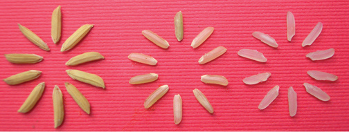 เมล็ดข้าวกล้อง ยาว x กว้าง x หนา = 7.45 x 2.15 x 1.75 มิลลิเมตร |
