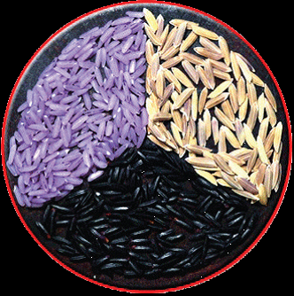 เป็นข้าวเจ้าเยื่อหุ้มเมล็ดสีม่วงดำ |