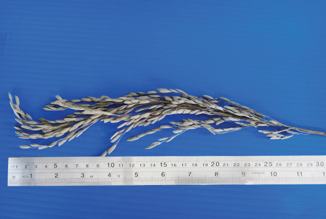 ลักษณะรวงค่อนข้างแน่น คอรวงยาว |