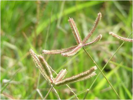 ลำต้นทอดนาบกับพื้นและยกสูงขึ้นได้ประมาณ 40-50 ซ.ม. กาบใบเป็นแผ่นหนาเนื้อหยาบ ลิ้นใบเป็นแผ่นบางมีขน ช่อดอกมี 4-5 ช่อดอกย่อยซี่งอยู่ติดกันตรงปลายโคนก้านดอก ออกดอกตลอดปี ขยายพันธุ์ด้วยเมล็ด เจริญเติบโตได้ดีในสภาพดินชื้นในข้าวไร่จะขึ้นพร้อมข้าว