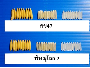 คุณภาพเมล็ดทางกายภาพดีเป็นข้าวเจ้าเมล็ดยาวเรียว ท้องไข่น้อย คุณภาพการสีดีถึงดีมาก สามารถสีเป็นข้าวสาร 100 เปอร์เซ็นต์ได้ |