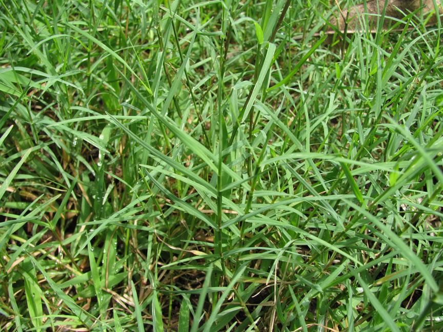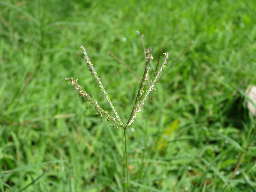 ลำต้นทอดนาบกับพื้นและยกสูงขึ้นได้ประมาณ 30 ซ.ม. แผ่นใบแหลมเล็กแคบเรียว ผิวใบเกลี้ยง ลิ้นใบเป็นแผ่นบาง ช่อดอกมี 3-7 ช่อดอกย่อยซี่งอยู่ติดกัน ตรงปลายโคนก้านเรียงเป็นวงรอบข้อ ขยายพันธุ์ด้วยเมล็ด, ไหล และลำต้น เจริญเติบโตได้ดีในสภาพดินแห้งและชื้นในข้าวไร่และนาดอนนาน้ำฝน จะขึ้นพร้อมข้าว