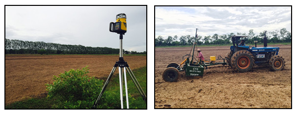 เครื่องจักรกลปรับระดับดินนาด้วยแสงเลเซอร์ มีการพัฒนามาแล้วกว่า 30 ปี ในการปรับระดับดิน เพื่อการจัดการน้ำให้กระจายทั่วถึงทั้งแปลงและระบายออก โดยเครื่องมือในการปรับระดับดินนาด้วยแสงเลเซอร์ มีองค์ประกอบหลัก คือ เครื่องส่งสัญญานเลเซอร์ (Lase transmitter) และระบบควบคุมการปรับระดับดิน (Grade control system) (Trimble Agriculture, 2014) และเมื่อต้องการใช้ระบบเลเซอร์มา สั่งการในการปรับระดับผิวดินนั้น สิ่งที่ต้องทำ 3 ขั้นตอนหลัก คือ