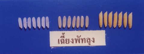 เมล็ดข้าวเปลือก ยาว x กว้าง x หนา = 9.8 x 2.5 x 1.8 มิลลิเมตร