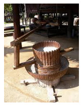เป็นเครื่องสีข้าวที่มีการกะเทาะเปลือกข้าวออกอย่างเดียว ทำจากไม้ไผ่สานแล้วพอกด้วยดินเหนียว มีลูกกะเทาะ 2 ลูก โดยลูกล่างจะอยู่คงที่และลูกบนจะหมุนด้วยแรงคน