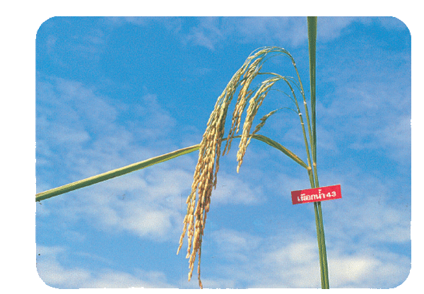 ลำต้นและใบสีเขียว แตกกอมาก รวงใหญ่ คอรวงยาว เมล็ดข้าวเรียวยาว