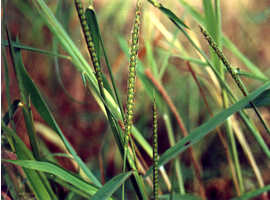 ไม่สามารถงอกใต้น้ำได้ มักงอกพร้อมหรือหลังข้าว 1-2 สัปดาห์ พบมากในนาหว่านข้าวแห้งและนาหว่านน้ำตม