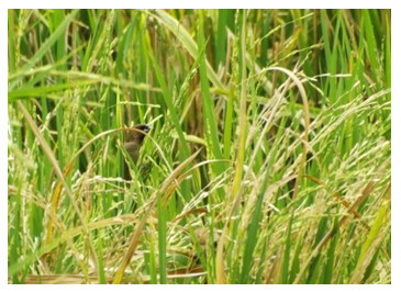 ภาพที่ 1 รวงข้าวที่ถูกนกกิน รวงจะตั้งขึ้น
