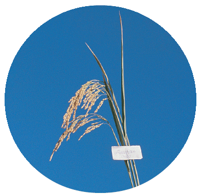 ทรงกอตั้งตรง แตกกอดี ต้นและใบสีเขียวเข้ม ใบธงตั้ง เมล็ดยาวเรียว