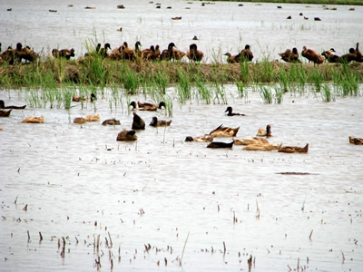การเลี้ยงเป็ดไล่ทุ่งสามารถลดปริมาณเมล็ดข้าววัชพืชที่หลุดร่วงอยู่บนผิวดินได้ โดยเป็ด 200 ตัว/ไร่ ปล่อยไว้เป็นเวลา 2 วัน สามารถลดความหนาแน่นข้าววัชพืชได้ถึง 50 %