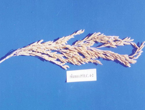 ได้จากการรวบรวมพันธุ์ข้าวพื้นเมือง จากตำบลท่ามิหรำ อำเมือง จังหวัดพัทลุง แล้วนำไปปลูกคัดเลือกแบบคัดพันธุ์บริสุทธิ์ จนได้สายพันธุ์เข็มทอง PTLC97001-4-2 |