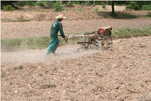เกษตรกรคราดเตรียมแปลงด้วยรถไถเดินตาม