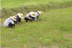 เกษตรกรกำจัดวัชพืชโดยใช้มือถอน