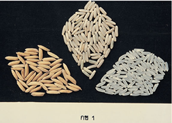 เมล็ดข้าวเปลือก ยาว x กว้าง x หนา = 10.0 x 2.5 x 2.0 มิลลิเมตร |