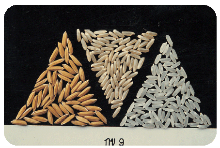 เมล็ดข้าวเปลือก ยาว x กว้าง x หนา = 10.0 x 2.7 x 2.0 มิลลิเมตร
