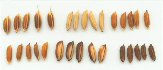 1.1 สีข้าวเปลือก เป็นลักษณะประจำพันธุ์ ซึ่งมีสีขาวหรือฟาง มีส่วนในการตั้งชื่อพันธุ์ข้าวในอดีต สีข้าวเปลือกจะพบมีสีขาว ฟาง ม่วง และดำ