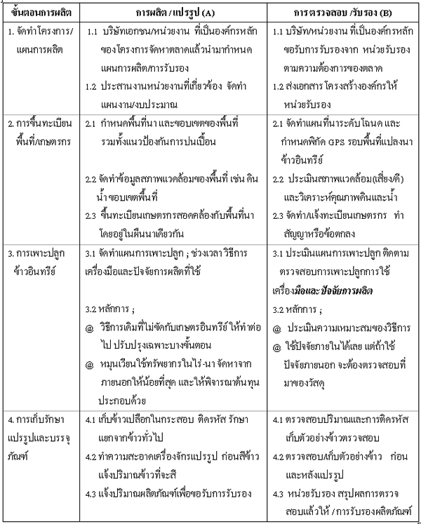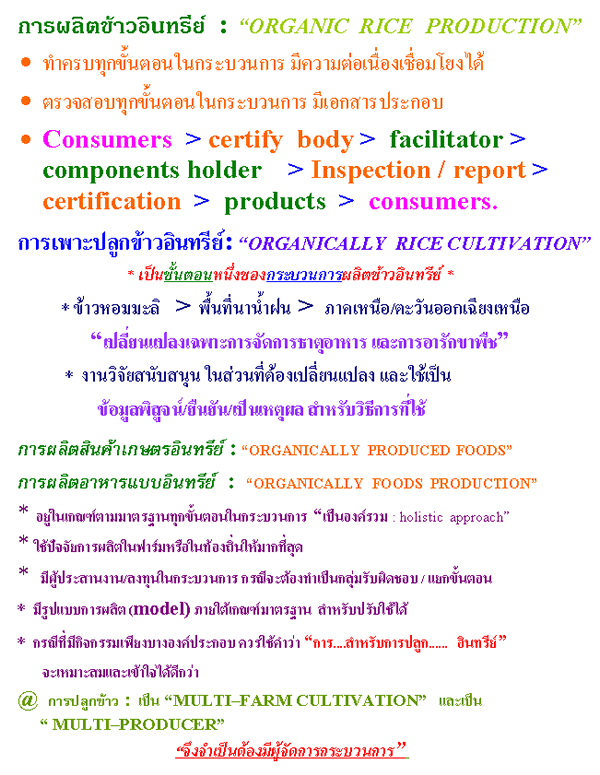| กระบวนการ(procession)ของการผลิตข้าวอินทรีย์ ตามมาตรฐานสากล | |||||||