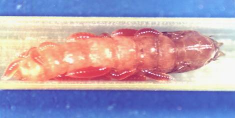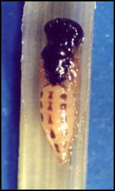 ตัวหนอนของ N. oryzae Ferriere กำลังดูดกินดักแด