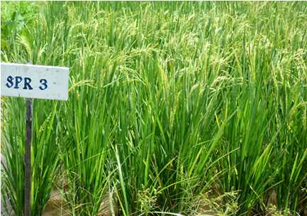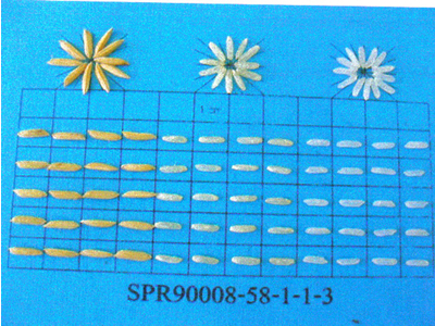 ได้จากการผสมพันธุ์ระหว่างลูกผสมกลับครั้งที่ 2 (BC2) ของ Basmati370*3/กข7 กับพันธุ์ IR68 ที่ศูนย์วิจัยข้าวสุพรรณบุรี ในฤดูนาปรัง พ.ศ.2533 ปลูกคัดเลือกจนได้สายพันธุ์ SPR90008-58-1-1-3 |