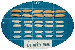 เมล็ดข้าวเปลือก ยาว x กว้าง x หนา = 10.7 x 2.6 x 1.9 มิลลิเมตร |