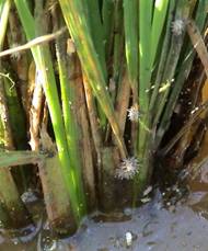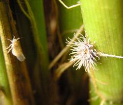 เพลี้ยกระโดดสีน้ำตาลที่ถูกทำลายโดยเชื้อรา Hirsutella |