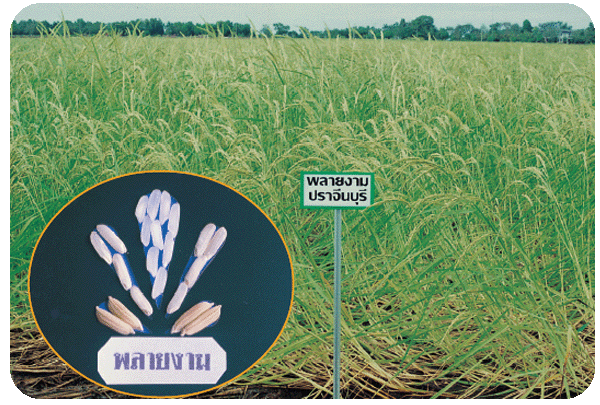 ใบสีเขียว ใบธงค่อนข้างตั้งตรง คอรวงยาว ระแง้ถี่ การชูรวงดี |